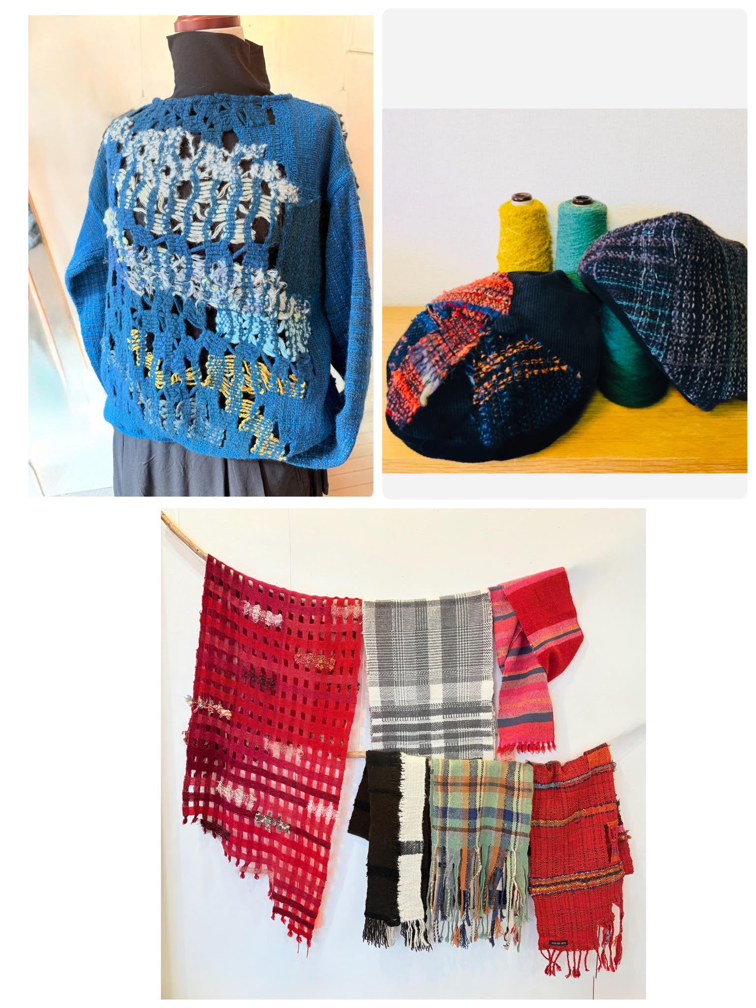 手織りで製作した布を使い 洋服・マフラー・帽子・バックなど 絹・麻・カシミアefc いろいろな表情を持つ糸を使い、色・風合いの違いを楽しみながら糸の持つ力に癒され製作しています。