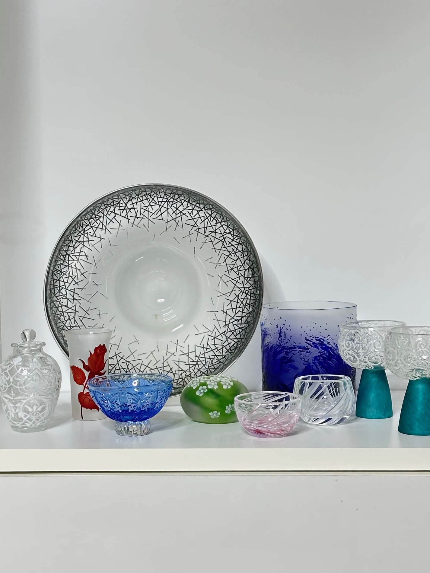 ガラスの作品 ガラスに魅せられて28年… 吹きガラス、サンドブラスト、切り子など 作り集めた数々を展示いたします。 ぜひ、お気軽にお立ち寄りください。
