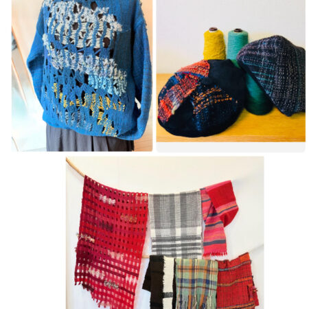 手織りで製作した布を使い 洋服・マフラー・帽子・バックなど